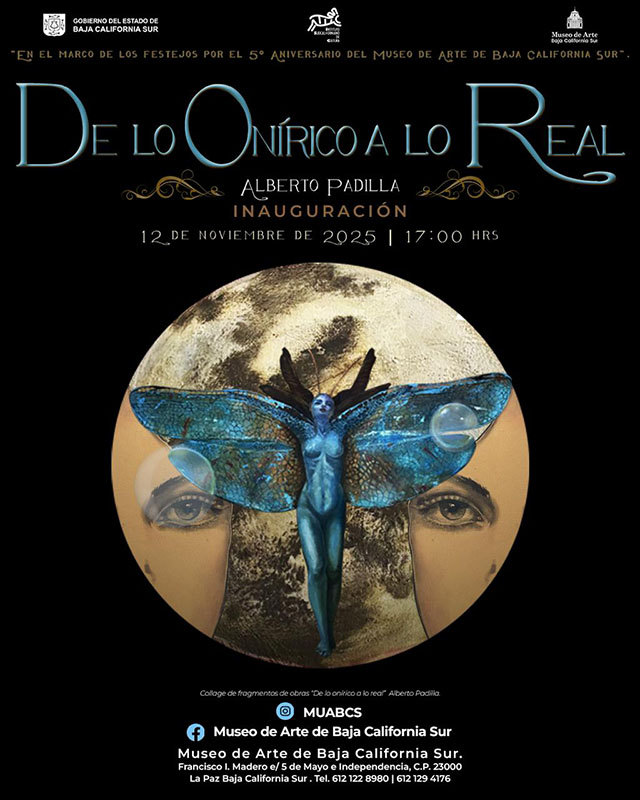 Presented as part of the 5th anniversary of the Museum of Art of Baja California Sur, this exhibition explores the dialogue between dreams, symbolism, and reality within Alberto Padilla’s artistic vision.
